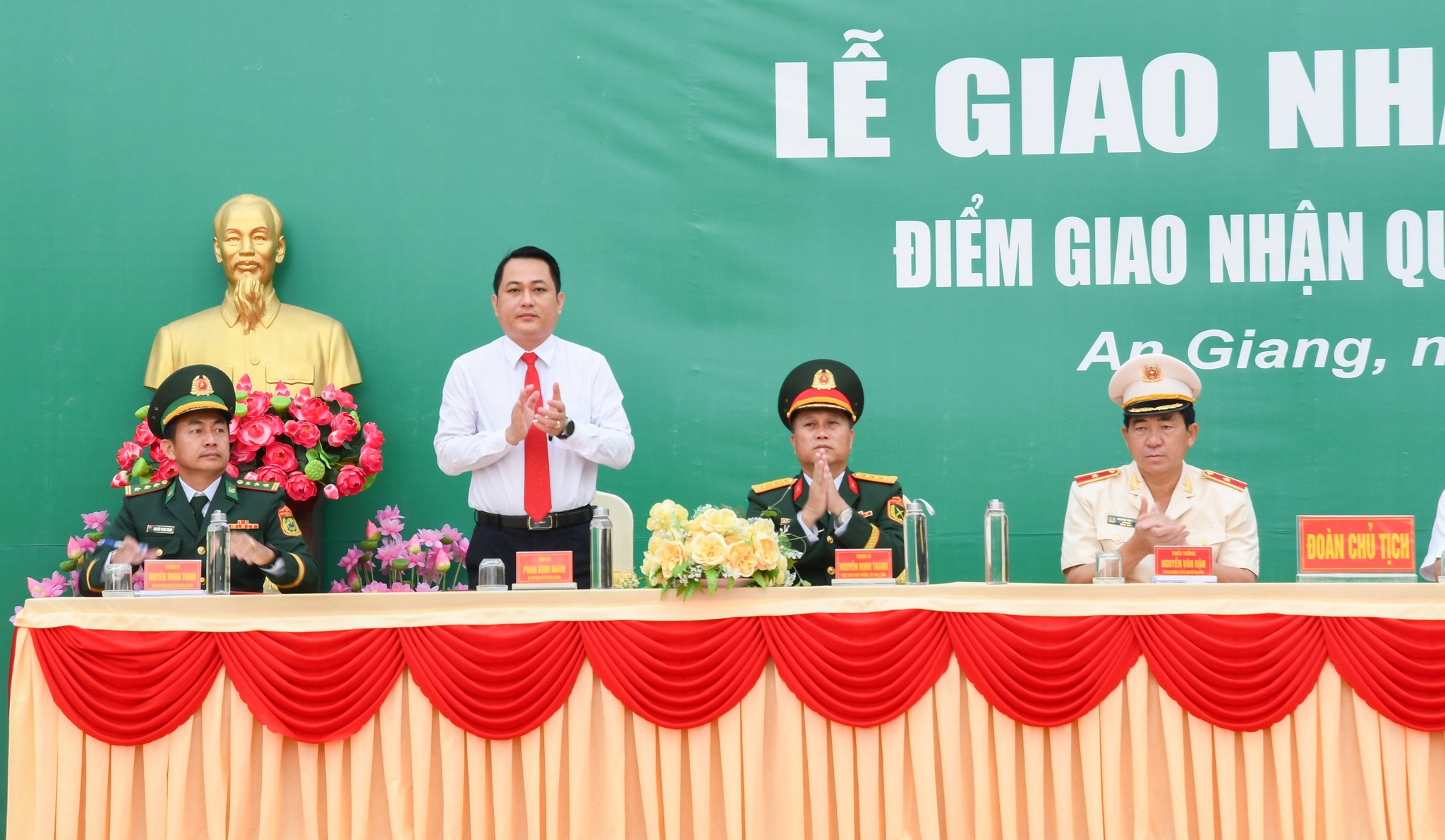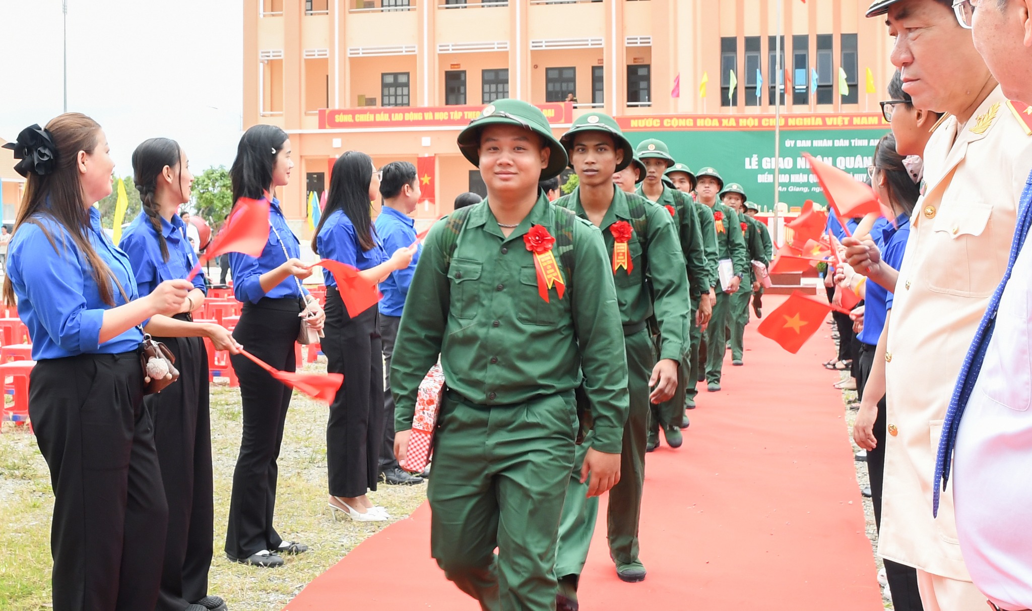 Phát biểu tại lễ giao quân, Thiếu tướng Nguyễn Văn Hận - Ủy viên Ban Thường vụ Tỉnh ủy, Giám đốc Công an tỉnh, Phó Chủ tịch Hội đồng nghĩa vụ Quân sự tỉnh đã gửi lời chúc mừng đến các thanh niên trúng tuyển thi hành nghĩa vụ năm nay, đồng thời gửi gắm niềm tin, mong muốn các tân binh tiếp tục phát huy truyền thống vẻ vang của Quân đội nhân dân Việt Nam anh hùng và Công an nhân dân anh hùng, nhanh chóng hòa nhập với đơn vị; an tâm tư tưởng, tích cực học tập rèn luyện, chấp hành nghiêm kỷ luật, nêu cao tinh thần đoàn kết, tương trợ giúp đỡ lẫn nhau cùng tiến bộ, hoàn thành xuất sắc nhiệm vụ trong suốt thời gian tại ngũ.