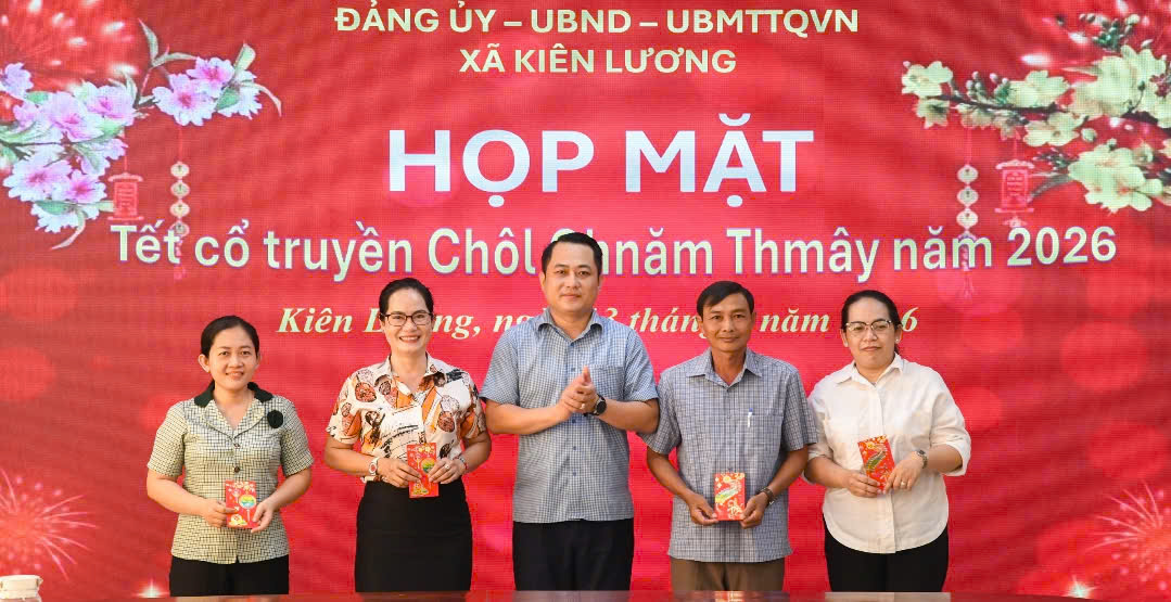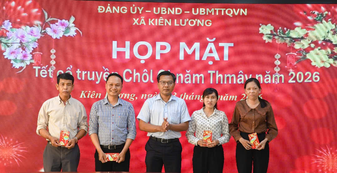 Nhân dịp Tết cổ truyền Chôl Chnăm Thmây năm 2026 của bà con đồng bào Khmer, chiều ngày 13/4/2026 Đảng ủy, UBND và Ủy bam MTTQ Việt Nam xã Kiên Lương tổ chức họp mặt, tặng quà cho các đồng chí là đồng bào tộc Khmer trong Ban Chấp hành Đảng ủy và các đồng chí công tác ở các cơ quan Đảng, Đoàn thể, Mặt trận, các cơ quan chuyên môn trực thuộc Ủy ban nhân dân xã.