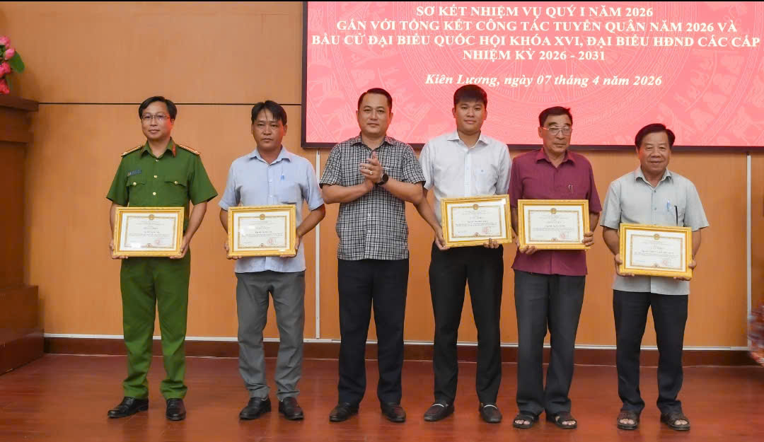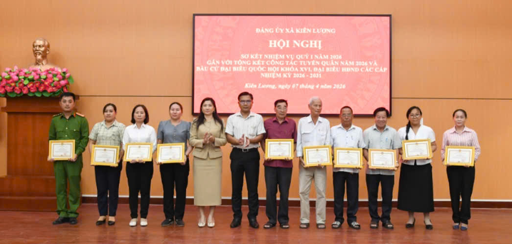 Chiều ngày 7/4/2026, Ủy ban bầu cử xã Kiên Lương vừa tổ chức tổng kết công tác bầu cử đại biểu Quốc hội khóa XVI và đại biểu Hội đồng nhân dân các cấp, nhiệm kỳ 2026–2031 và khen thưởng cho các tập thể, cá nhân có thành tích xuất sắc.