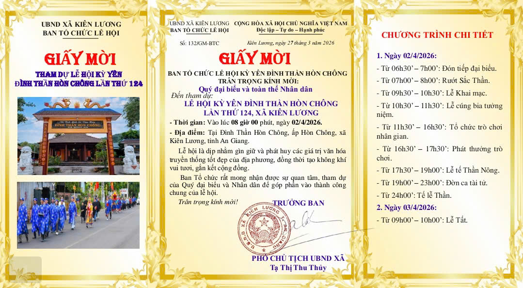 MỜI THAM DỰ LỄ HỘI KỲ YÊN ĐÌNH THẦN HÒN CHÔNG LẦN THỨ 124, XÃ KIÊN LƯƠNG