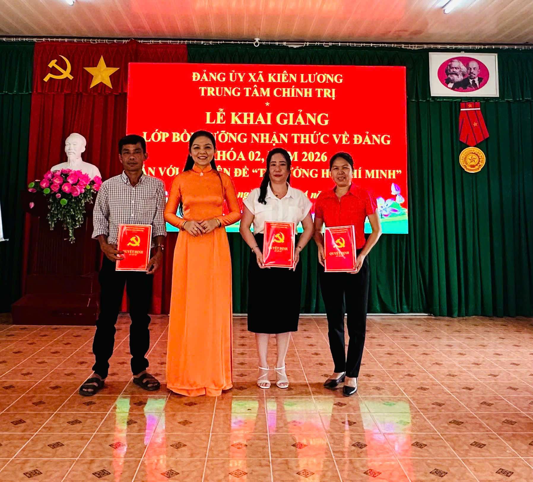 Sáng ngày 15/4/2026, Trung tâm Chính trị xã Kiên Lương, tỉnh An Giang tổ chức lễ Khai giảng khai giảng lớp bồi dưỡng nhận thức về Đảng khoá 02 năm 2026; gắn với chuyên đề Tư tưởng Hồ Chí Minh.
