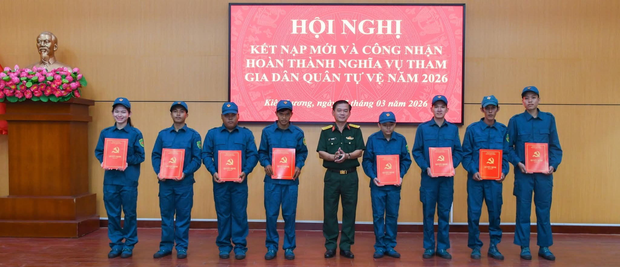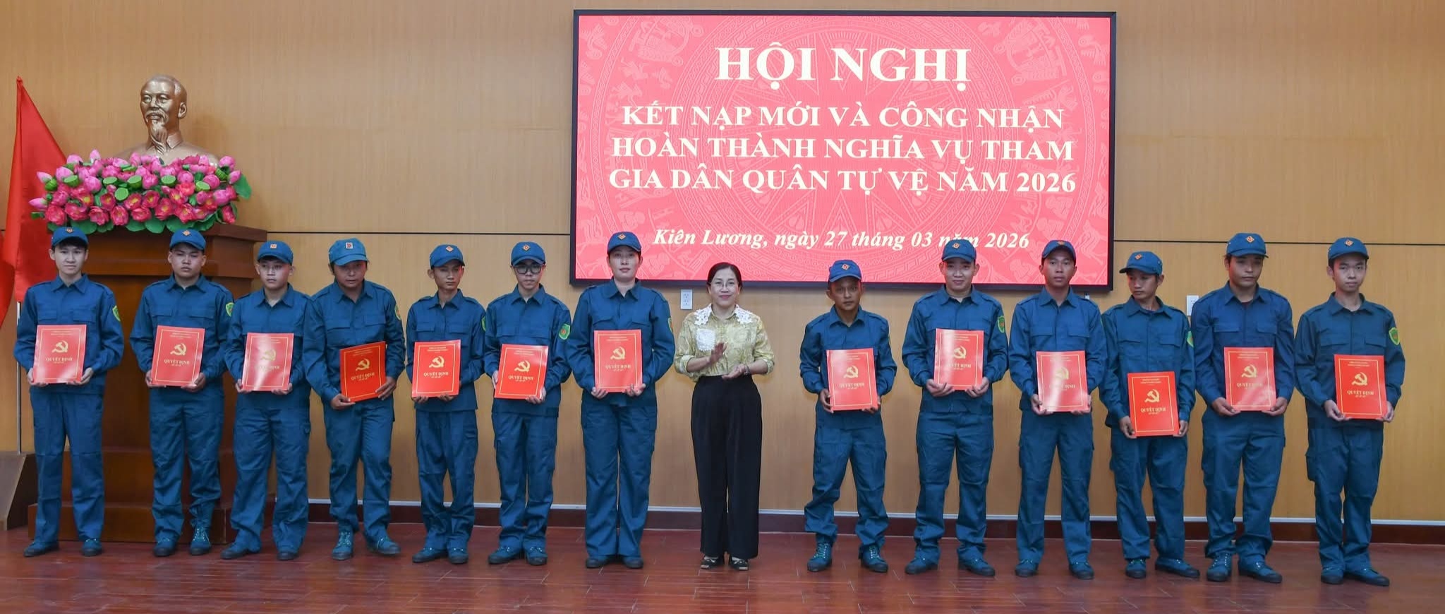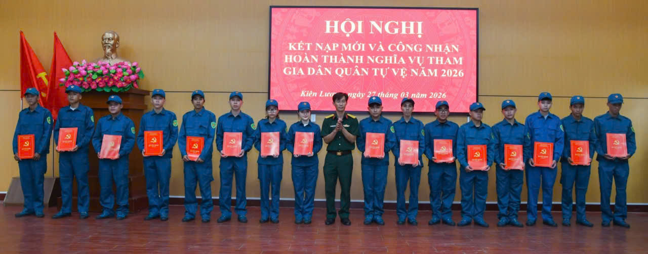 Sáng ngày 27/03/2026, UBND xã Kiên Lương tổ chức Lễ kết nạp lực lượng Dân quân năm 2026 theo quy định của Luật Dân quân tự vệ và kế hoạch công tác quốc phòng, quân sự địa phương.